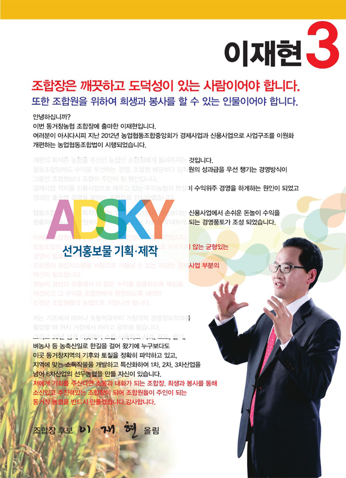 ÀÌÀçÇö Á¶ÇÕÀå Èĺ¸ ¼±°ÅÈ«º¸¹° (µ¿°Åâ³ó¾÷ Çùµ¿Á¶ÇÕ)