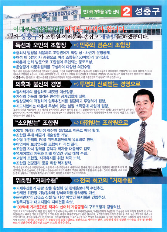 ¼ºÃ汸 Á¶ÇÕÀå Èĺ¸ ¼±°ÅÈ«º¸¹° (°ÅÁ¦¼ö»ê¾÷ Çùµ¿Á¶ÇÕ)